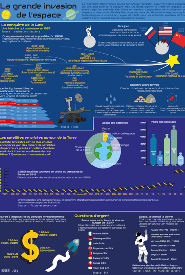 Dans le cadre de ma licence, j'ai eu l'opportunité de créer une infographie sur l'espace, un sujet fascinant qui évoque l'imagination et la curiosité de l'humanité. L'infographie est un outil puissant pour communiquer des informations complexes de manière simple et attrayante. Grâce à des éléments graphiques et des données pertinentes, elle permet de capter l'attention du public tout en fournissant des connaissances essentielles.